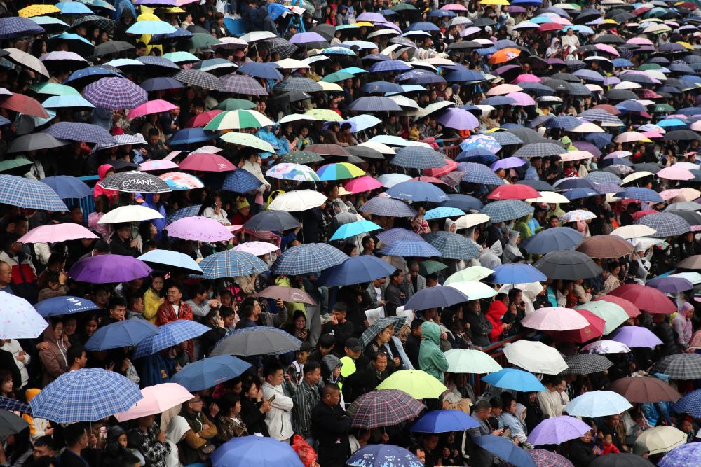 5月1日,人們在貴州省黔東南苗族侗族自治州臺(tái)江縣臺(tái)盤鄉(xiāng)臺(tái)盤村觀看“村BA”球王爭霸賽。新華社發(fā)(余天英 攝)