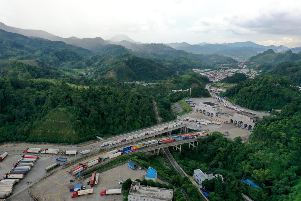 這是繁忙的廣西憑祥友誼關(guān)口岸(2023年9月9日攝,無人機(jī)照片)。新華社記者 曹祎銘 攝