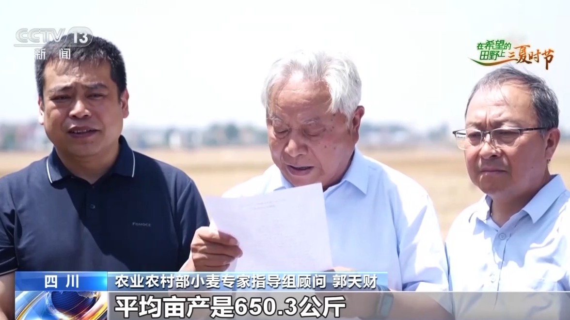 農(nóng)業(yè)農(nóng)村部小麥專家指導(dǎo)組顧問 郭天財(cái):我們按照加權(quán)平均,平均畝產(chǎn)是650.3公斤,應(yīng)該說創(chuàng)造了四川省百畝連片的最高紀(jì)錄。