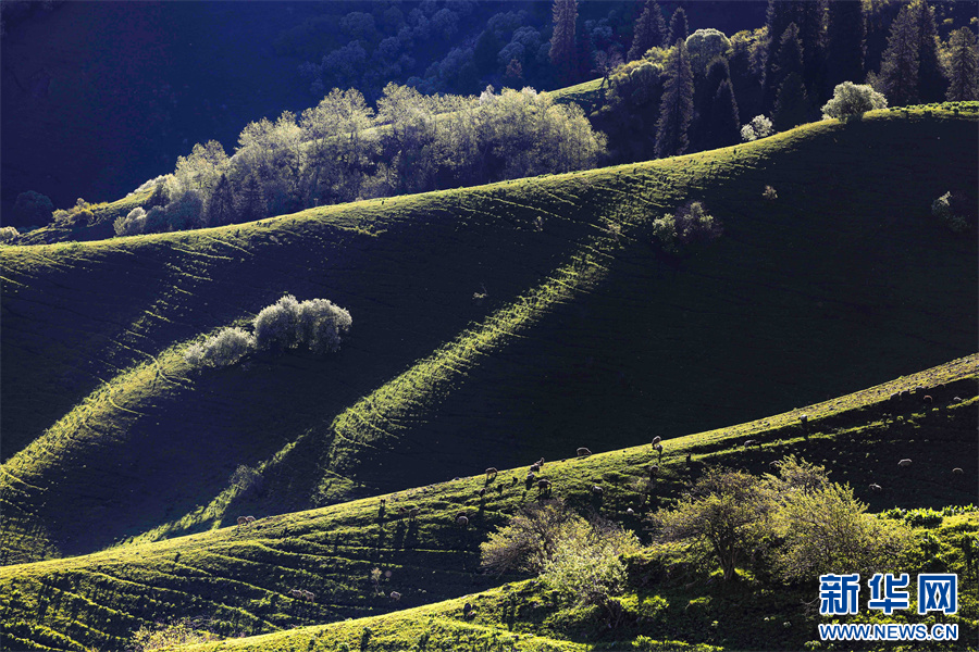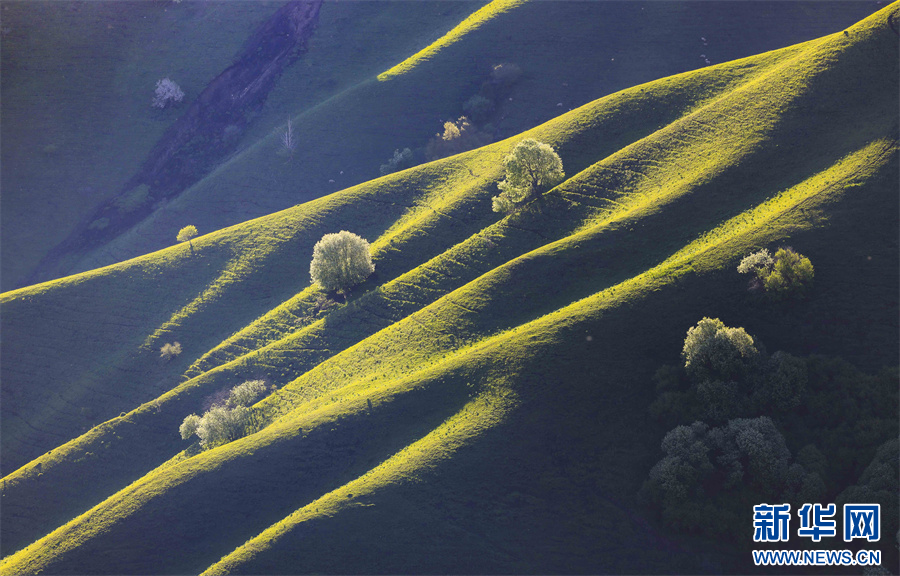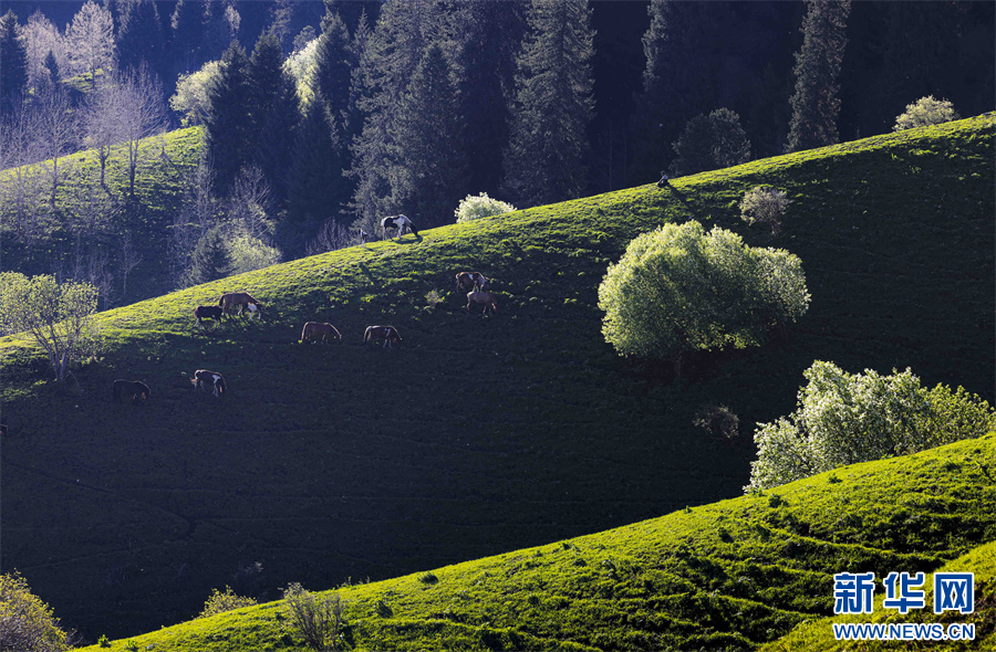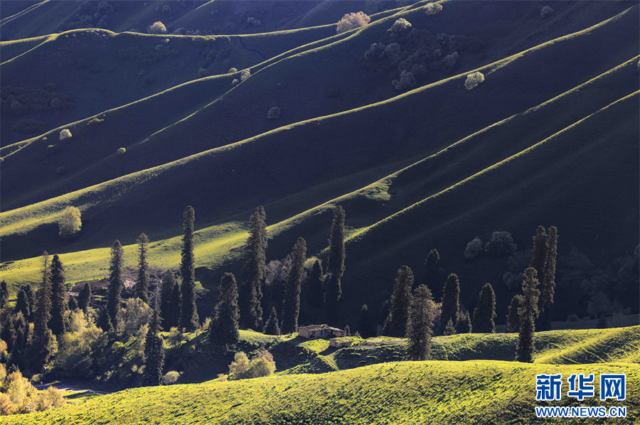 5月的新疆那拉提草原綠草如茵,繁花盛放,生機勃勃。清晨的光線照射在那拉提起伏的山體脊梁上,匯聚成神奇的光與影的世界,陽光勾畫出山體草甸輪廓,線條柔美,層次分明。山梁與山脊、草木披上金色長袍,為綿延起伏的草甸增戴上神秘面紗,一幅美麗的畫卷展現(xiàn)在眼前,令人陶醉。