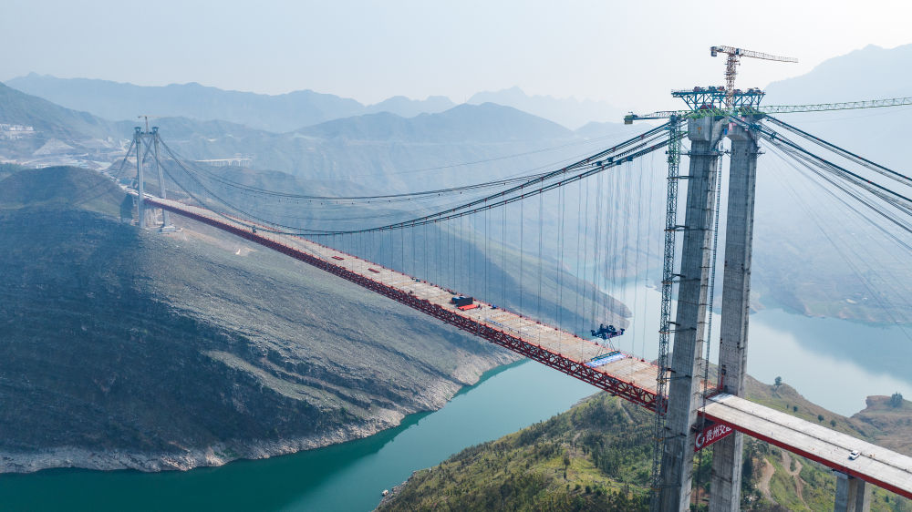 貴州交建集團(tuán)投資建設(shè)的納晴高速牂牁江大橋順利實(shí)現(xiàn)合龍,為納(雍)晴(?。└咚偃€建成通車打下堅(jiān)實(shí)基礎(chǔ)(4月28日攝,無人機(jī)照片)。新華社記者 陶亮 攝