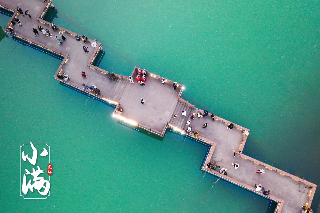 ↑湖南省湘西土家族苗族自治州,游客在鳳凰古城游玩。(無(wú)人機(jī)照片)CICPHOTO/周秀魚(yú)春 攝