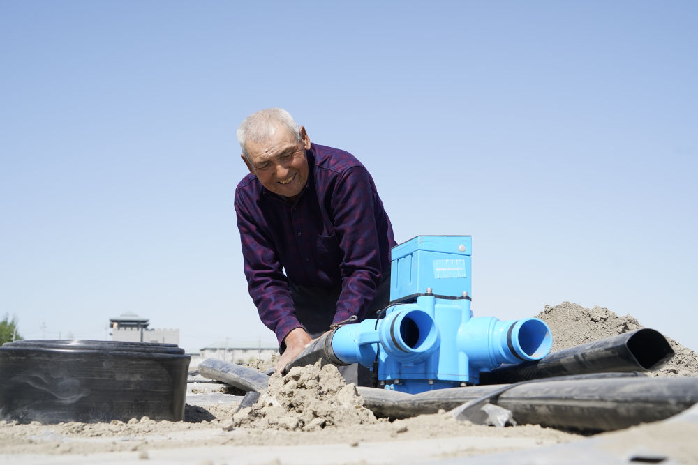 “我手下有七八個人,都是這里的村民,管著1500畝地?!惫吕@拉得意地說。棉花播種前后,他和同伴忙著安裝連接泵房和滴灌帶的一整套供水系統(tǒng),由于每一個水閘都安有傳感器,哈衣繞拉用一臺手機就能監(jiān)測灌溉水流量、控制閥門開關(guān)。