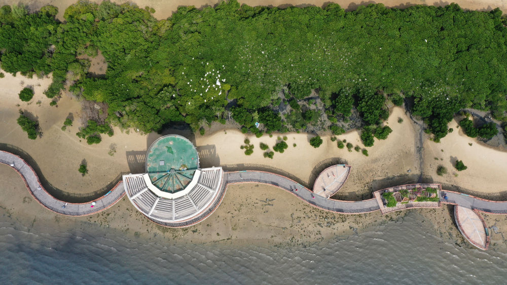 俯瞰廣東湛江市區(qū)海邊的紅樹林(2023年5月25日攝,無人機(jī)照片)。