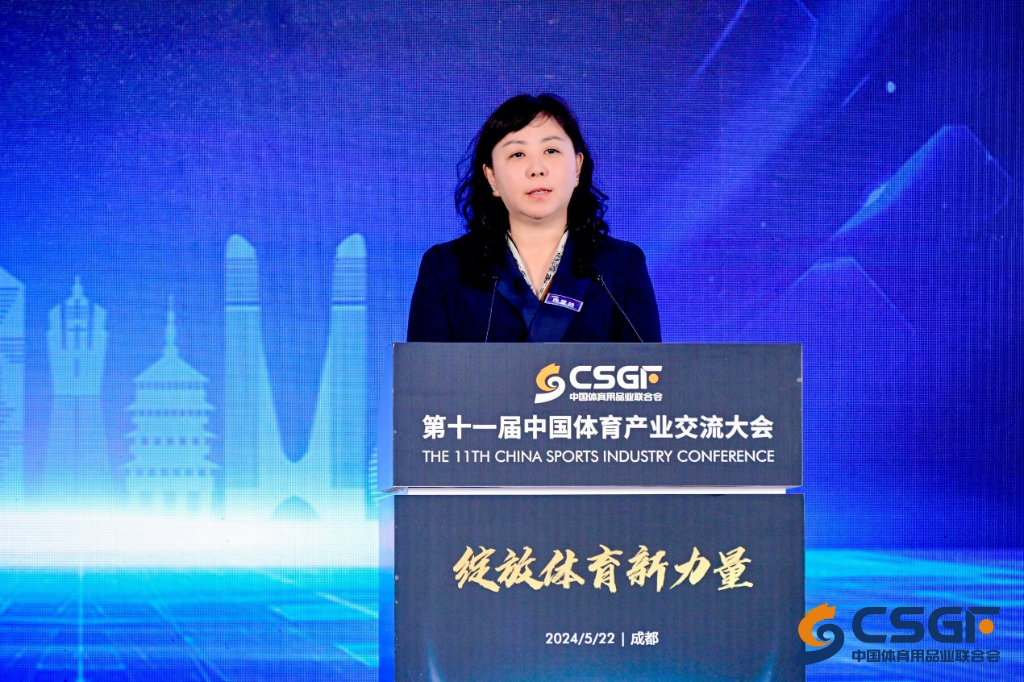 圖為國家體育總局體育經(jīng)濟(jì)司司長楊雪鶇發(fā)言。