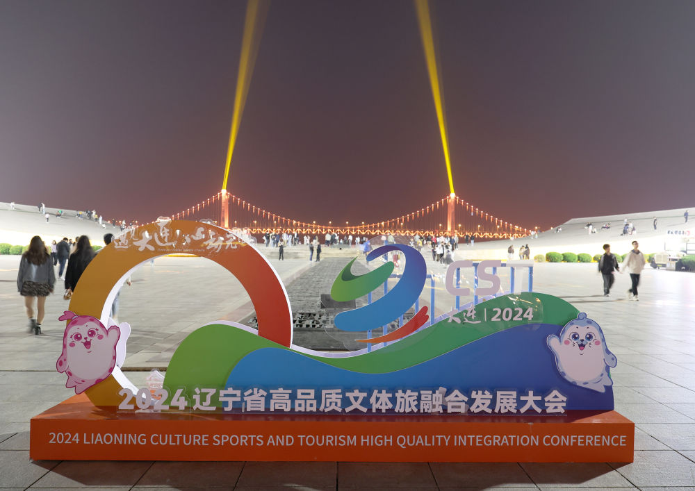 這是在遼寧省大連市星海廣場拍攝的“2024遼寧省高品質(zhì)文體旅融合發(fā)展大會”的展板(2024年5月23日攝)。 新華社記者 李鋼 攝