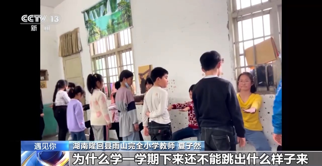 湖南隆回縣雨山完全小學(xué)老師 夏子然:跟他們跳舞,任何時(shí)候都是很難忘的回憶,每天都是限定版,我會(huì)用拍視頻的方式給記錄下來(lái),在課后一個(gè)一個(gè)放大,去觀察他們的狀態(tài)和跳舞的動(dòng)作,在第二節(jié)課,再做出相對(duì)應(yīng)的調(diào)整。跳舞能夠讓他們放松,跳舞能夠讓他們變得開(kāi)心,我最初的目的就達(dá)到了。