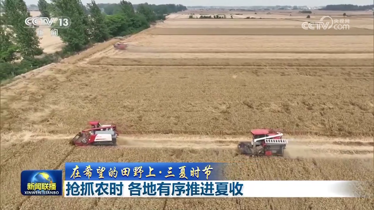 安徽小麥主產(chǎn)區(qū)收獲已過(guò)六成,在蒙城,當(dāng)?shù)爻浞掷没ヂ?lián)網(wǎng)、大數(shù)據(jù)、北斗導(dǎo)航等信息化技術(shù),搭建農(nóng)機(jī)作業(yè)指揮調(diào)度平臺(tái),可實(shí)時(shí)查詢農(nóng)機(jī)位置、農(nóng)機(jī)狀態(tài),隨時(shí)予以調(diào)度,機(jī)收作業(yè)區(qū)域做到定人、定地、定機(jī)械,讓麥?zhǔn)兆鳂I(yè)更高效。山東6000多萬(wàn)畝小麥陸續(xù)進(jìn)入收獲期,在濟(jì)南長(zhǎng)清區(qū),收割機(jī)來(lái)回穿梭,小麥?zhǔn)崭睢⒚摿?、秸稈粉碎還田一氣呵成,隨后玉米播種機(jī)下地,同步進(jìn)行玉米播種和施肥,實(shí)現(xiàn)夏收、夏播無(wú)縫銜接。