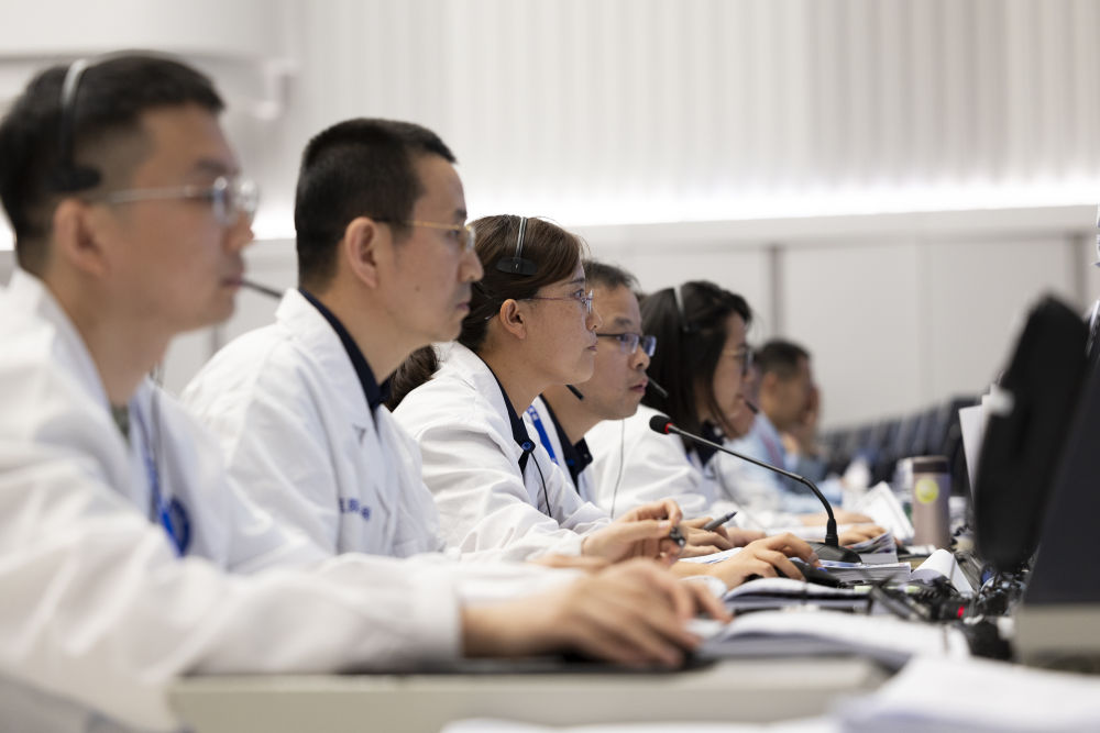 6月4日,在北京航天飛行控制中心,工作人員在監(jiān)測(cè)嫦娥六號(hào)上升器自月球背面起飛狀況。