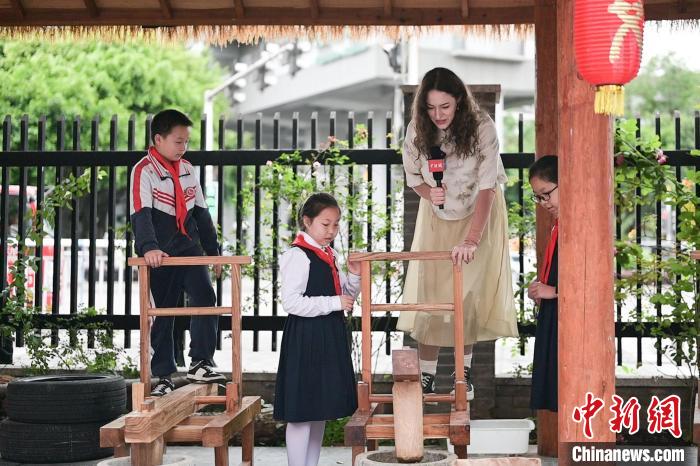 28歲的宋瀟佩來自波蘭,是重慶大學(xué)的一名留學(xué)生,這是她在中國度過的第一個端午節(jié)。為學(xué)習(xí)端午傳統(tǒng)文化習(xí)俗,宋瀟佩特地穿上中式服裝,走進重慶市艾草文化研究指導(dǎo)基地——重慶兩江新區(qū)嘉木小學(xué)校,以艾草為媒,和孩子們一同學(xué)習(xí)“艾+”學(xué)科生活融創(chuàng)教育課程,感受傳統(tǒng)文化在節(jié)日里煥發(fā)的新生機。