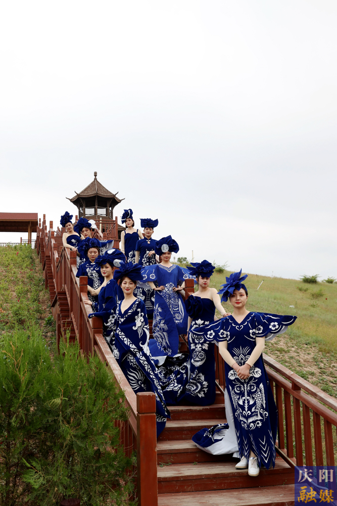 6月4日,慶陽融媒主播身著由鎮(zhèn)原縣文化館館長常燕創(chuàng)意設(shè)計(jì)的“剪云裳”慶陽剪紙系列服裝驚艷亮相。其中,“青花瓷”系列作品為全國全網(wǎng)首秀。