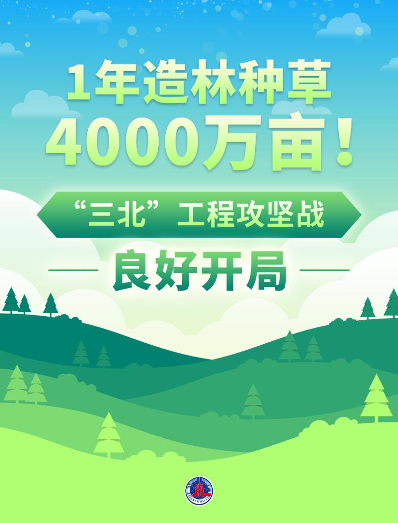 在我國(guó)北方遼闊的疆土上,一道綠色長(zhǎng)城正在不斷加固。國(guó)家林草局最新信息顯示,僅一年時(shí)間,“三北”工程攻堅(jiān)戰(zhàn)完成造林種草約4000萬畝。