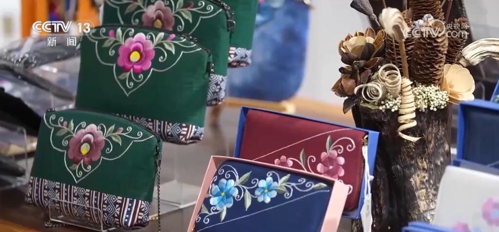 這樣精美的非遺手工藝品,不僅在博物館里能見到,我們?nèi)粘I钜材苡玫蒙?。您現(xiàn)在看到的,就是在楚雄特產(chǎn)店里銷售的成衣、絲巾、背包。這些都是純手工繡出來的。銷售非常火爆。)