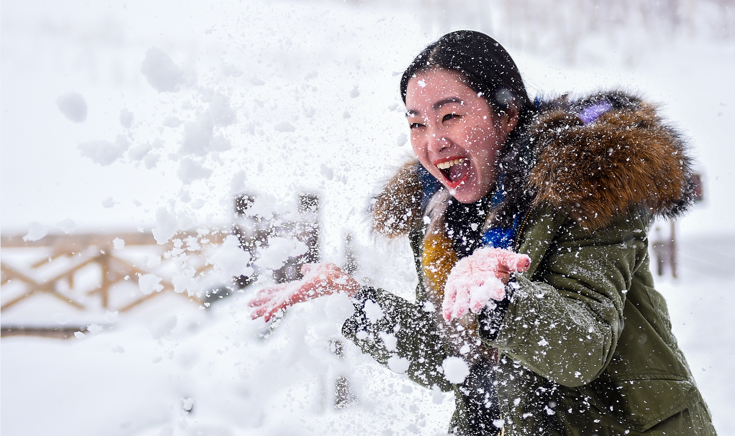 長白山景區(qū)內(nèi)玩雪的游客。 記者 王昊飛 攝