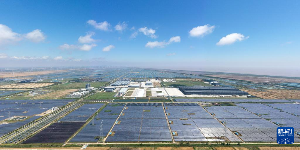 6月6日拍攝的射陽(yáng)港低(零)碳產(chǎn)業(yè)園外景(無(wú)人機(jī)照片)。新華社記者 楊磊 攝