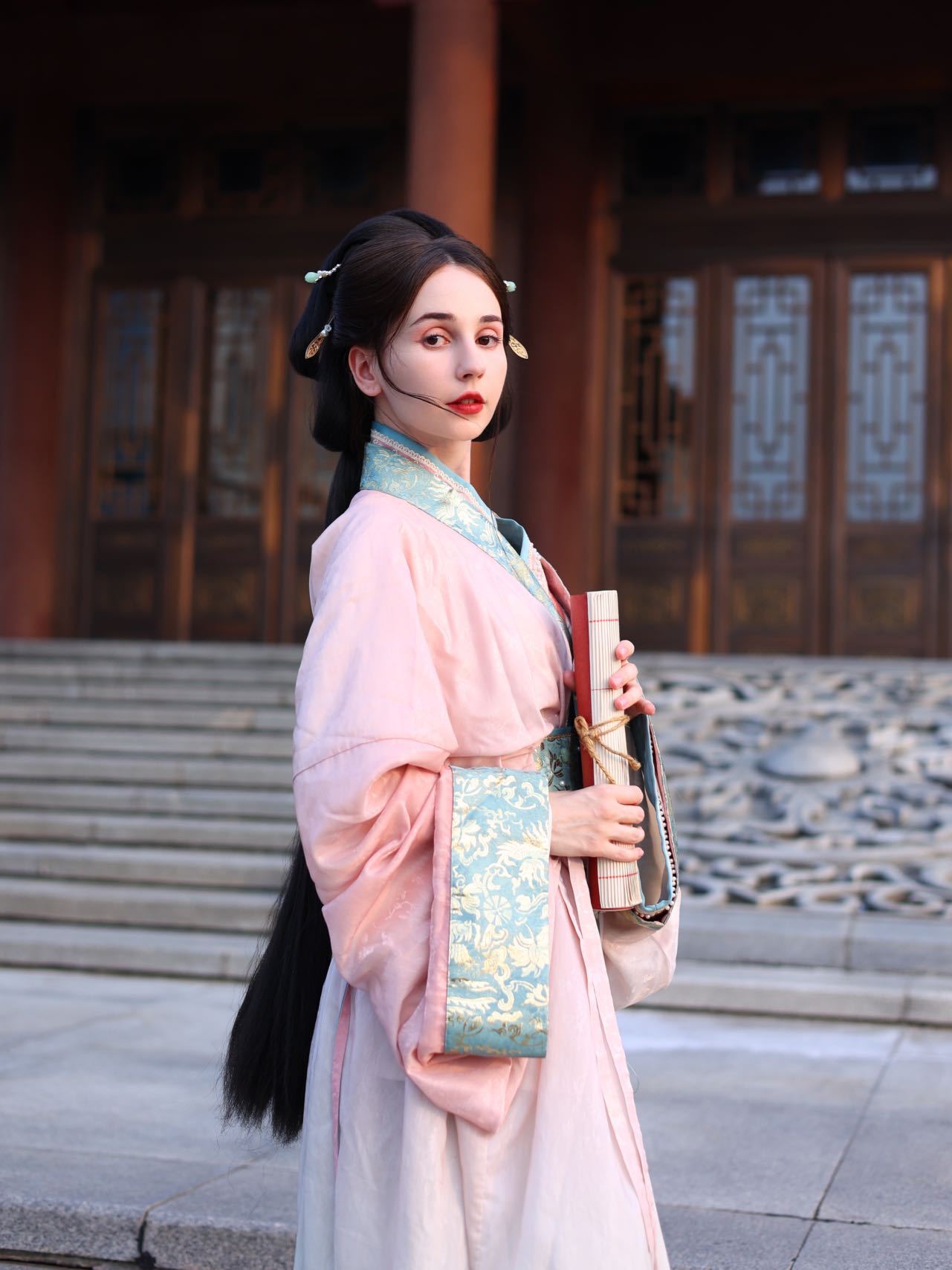 在假期里,安心冉喜歡穿著不同年代的漢服在中國各地旅游拍照、拍視頻,讓她感覺與環(huán)境融為了一體,仿佛穿越到了古代。