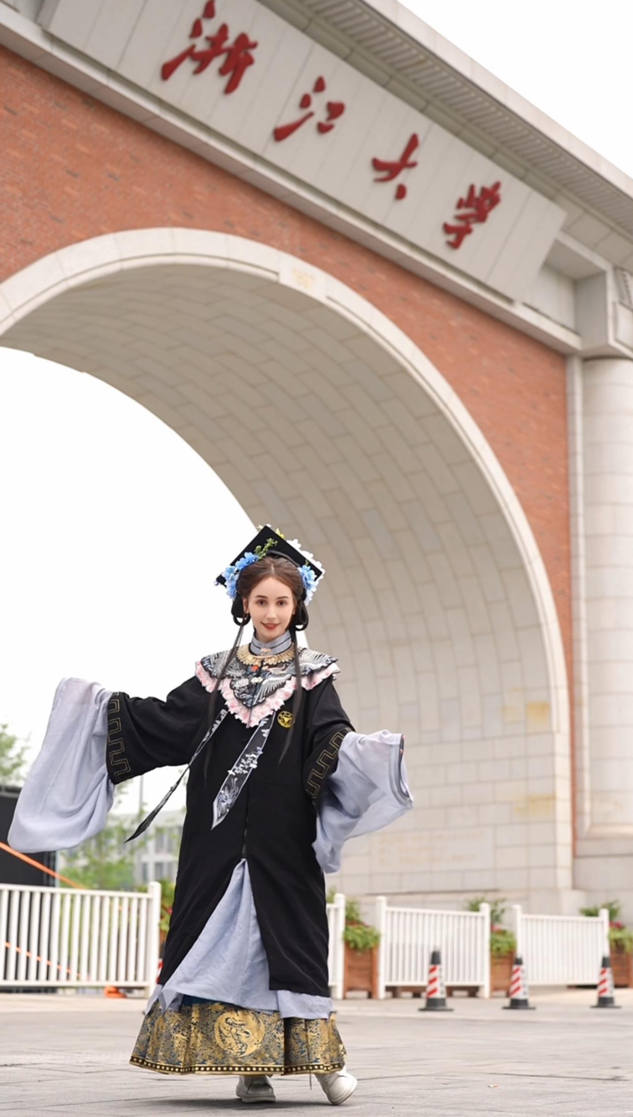 安心冉:所有的評論都在說很漂亮呀或者很適合你,或者恭喜你畢業(yè)了,我就覺得很感動。因為我是讀元明清文學(xué),能穿明代的衣服畢業(yè),我很開心。我穿的那套學(xué)士服云肩的形狀就是四合如意,蘊(yùn)含了人生順?biāo)斓拿篮米8?。胸前的圖案是丹鳳朝陽,它寓意著賢德的人前途光明。我覺得中國的學(xué)士服比西方的學(xué)士服更有意義。