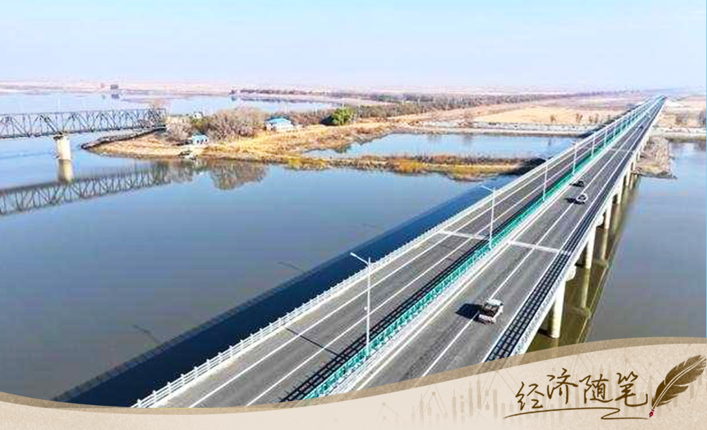 橋這邊,是吉林白城的大安市。橋那邊,是黑龍江大慶的肇源縣。多少年來(lái),兩岸居民同飲嫩江水、同吃嫩江魚(yú),見(jiàn)個(gè)面卻不太容易,夏天坐輪渡,冬天走冰面。如今,一座橋連接了彼此,周邊區(qū)域的交通被盤(pán)活,合作被激發(fā),政策與機(jī)制對(duì)接提速。當(dāng)南方游客涌入哈爾濱,不少哈爾濱人正開(kāi)車(chē)奔大安,去江邊吃魚(yú)。