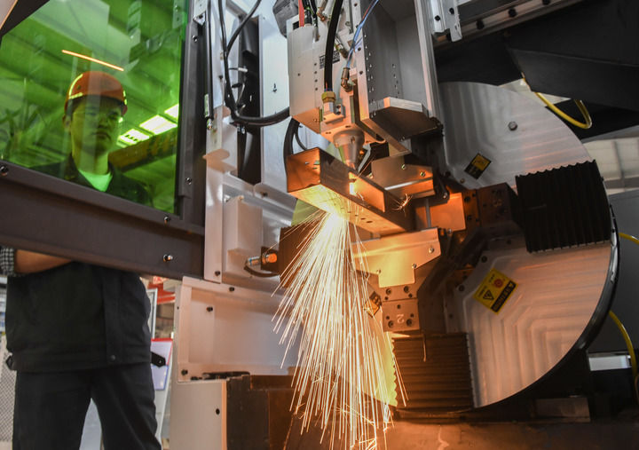 華工科技產業(yè)股份有限公司工作人員在激光設備生產線上工作(資料照片)。(新華社記者 程敏 攝)