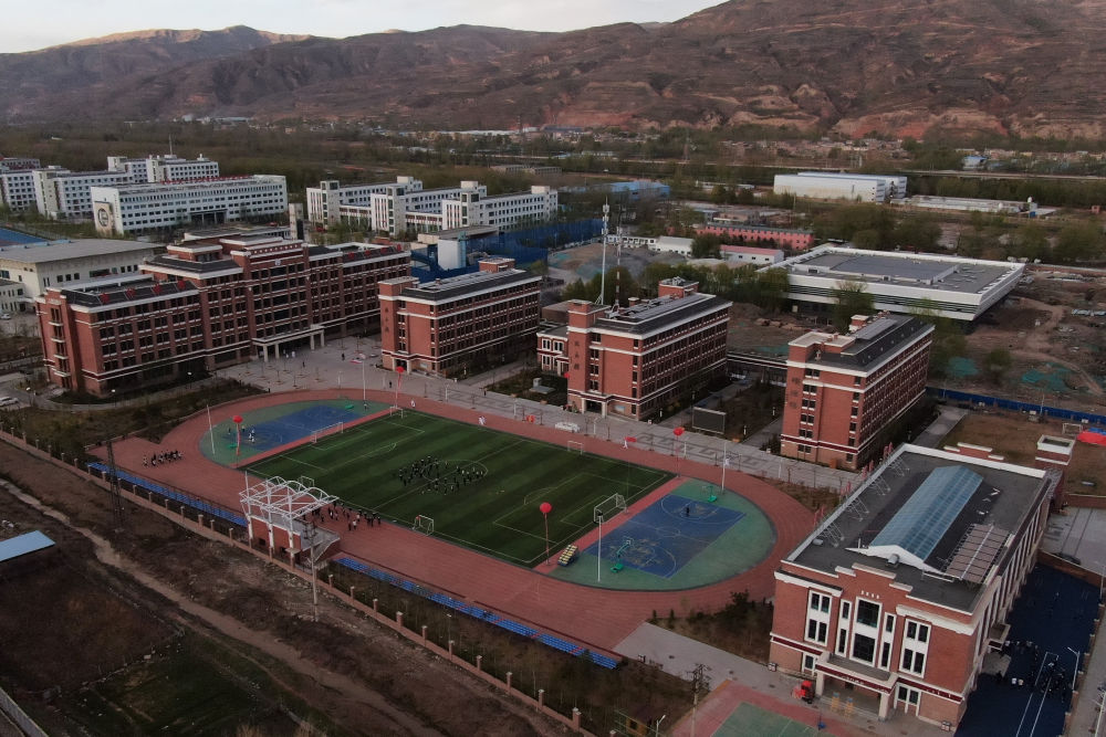 這是果洛西寧民族中學(xué)(2021年4月28日攝,無(wú)人機(jī)照片)。