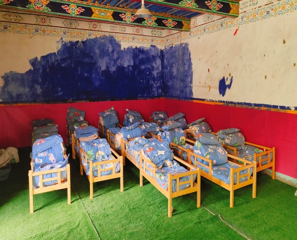 金點(diǎn)子,抓實(shí)干。自階段性入戶工作開展以來,駐西嘎村第十三批工作隊(duì)認(rèn)真了解入戶時發(fā)現(xiàn)的村幼兒園改造未能推進(jìn)的問題,現(xiàn)場走訪村幼兒園,排查村幼兒園用火、用電、用氣、食品衛(wèi)生安全隱患。在交談中,兩位教師談及幼兒園房間老舊、水泥地板凹凸不平,導(dǎo)致幼兒無法午休的問題,工作隊(duì)第一時間請示領(lǐng)導(dǎo),現(xiàn)場勘察房間形狀與大小,駐村隊(duì)員自發(fā)購買并鋪就64.2平米防滑草坪地毯,以改善園內(nèi)22名幼兒生活環(huán)境,給孩子們創(chuàng)建了相對舒適、干凈的午休環(huán)境。村幼兒園教師次珍表示:“此次活動極大改善了孩子們的生活條件,感謝人行日喀則市分行駐村工作隊(duì)一直以來對村幼兒園工作的關(guān)心?!?/p>