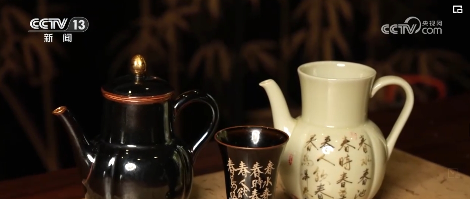 劉嘉豪是劉坤庭的兒子,這套出自他手的作品,器型、釉色的創(chuàng)意都源自“黑石號(hào)”的出水陶瓷,作品上面的詩(shī)句也是復(fù)刻而來(lái)。