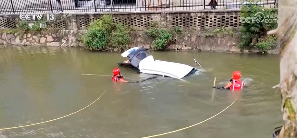 三人齊心協(xié)力幫司機脫困,并將他送往醫(yī)院治療。隨后,接到報警的消防救援人員也趕到現(xiàn)場,下水查看確定車上無人員被困。