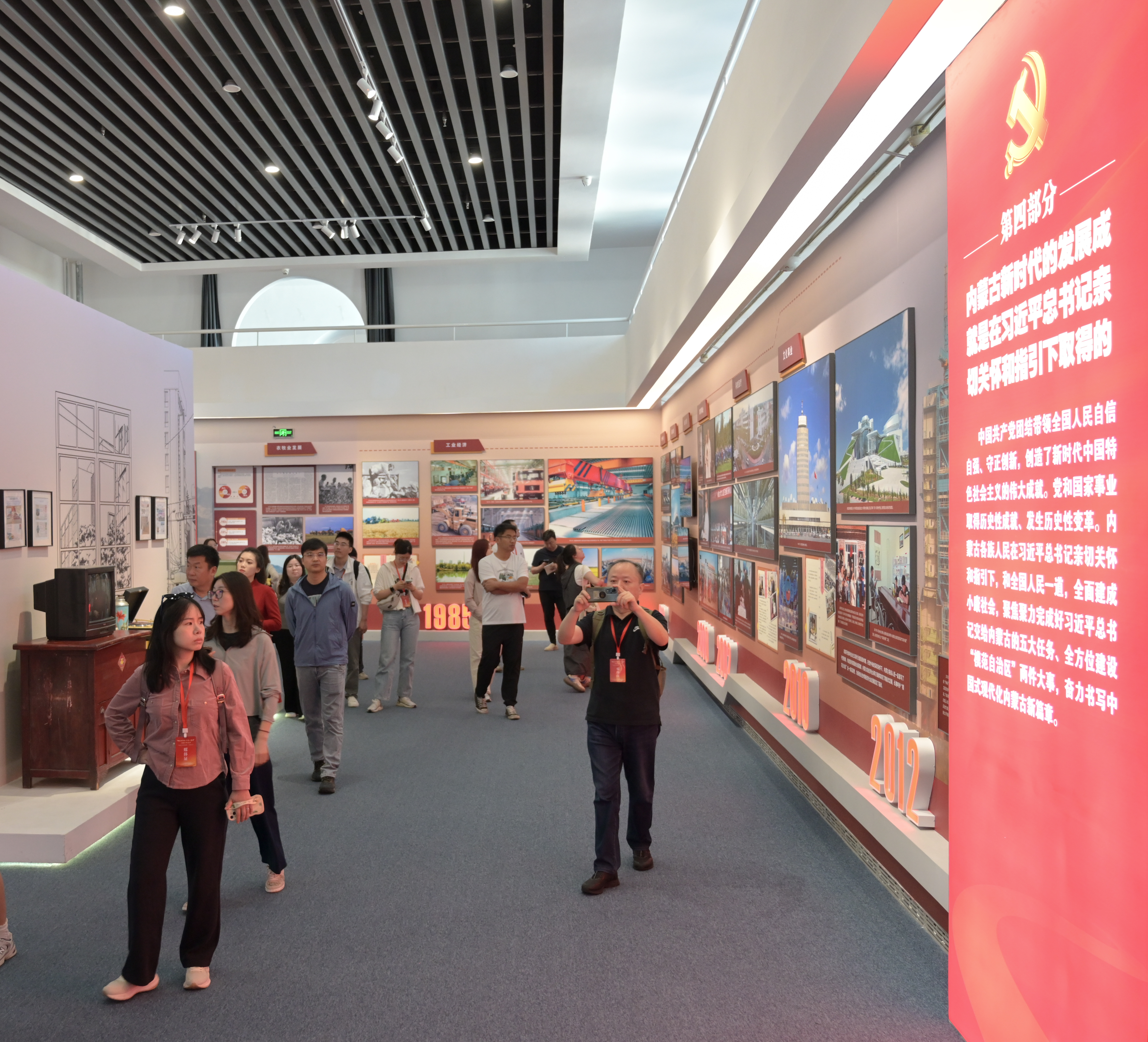 “牢記囑托 感恩奮進(jìn)”主題展以鑄牢中華民族共同體意識(shí)為主線,分為“人民領(lǐng)袖 情系北疆”“高瞻遠(yuǎn)矚 把舵領(lǐng)航”“五大任務(wù) 擔(dān)當(dāng)奮進(jìn)”“聚焦主線 模范前行”“人民至上 初心如磐”“勇闖新路 挺進(jìn)中游”六大篇章,全面回顧了習(xí)近平總書記對(duì)內(nèi)蒙古的深情關(guān)懷和厚愛期許,生動(dòng)展現(xiàn)了各族干部群眾緊跟總書記奮進(jìn)新征程、建功新時(shí)代的生動(dòng)實(shí)踐。