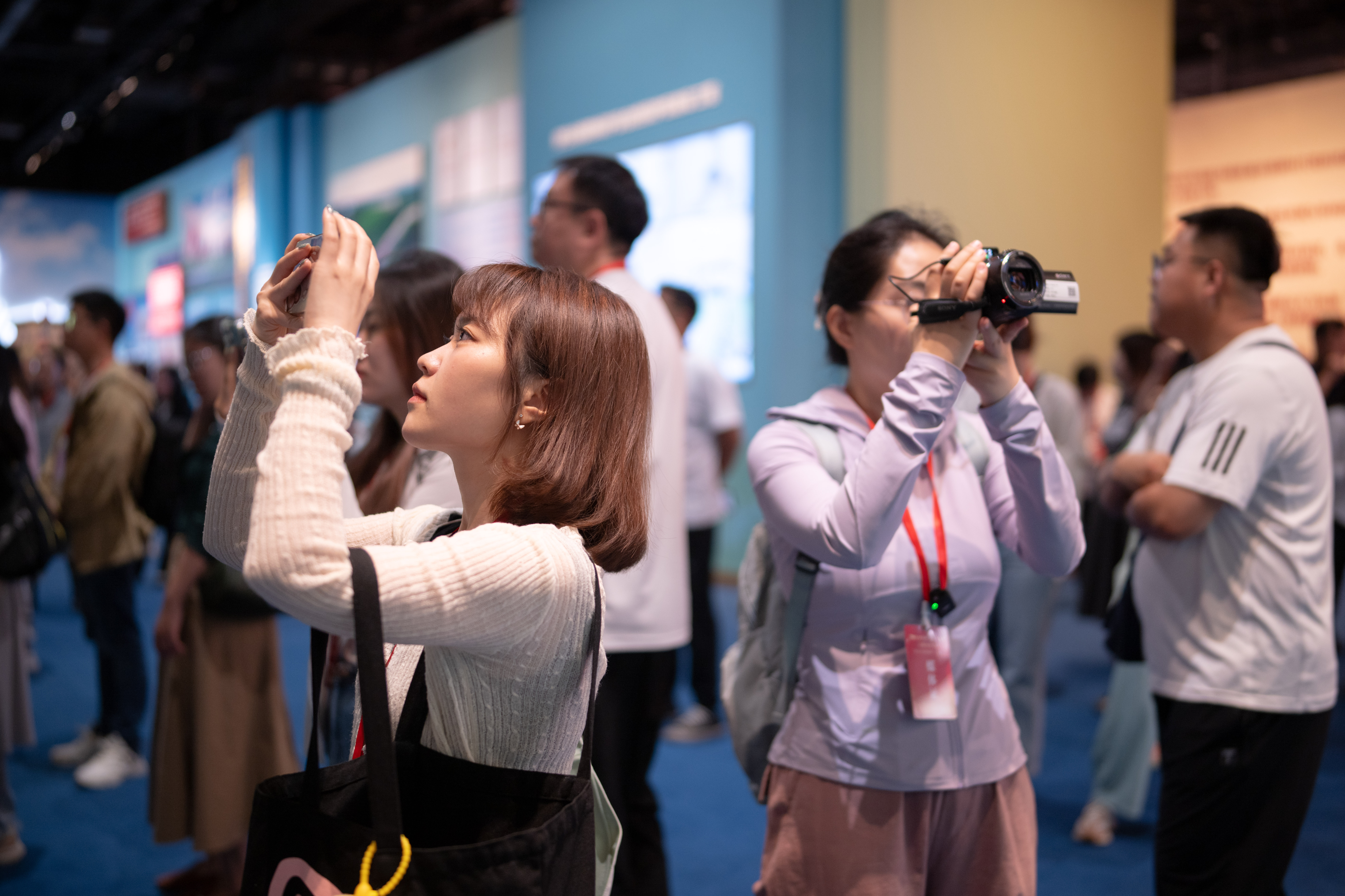采訪團(tuán)參觀“牢記囑托 感恩奮進(jìn)”主題展。