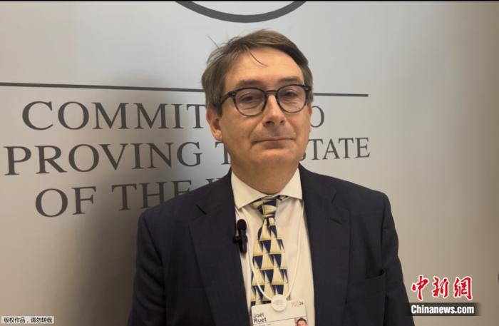 2024年6月27日,法國橋智庫主席、G20工商峰會(huì)能源工作組成員周瑞(Joel Ruet)在2024年夏季達(dá)沃斯論壇期間接受中新網(wǎng)專訪。中新網(wǎng)陳彩霞攝