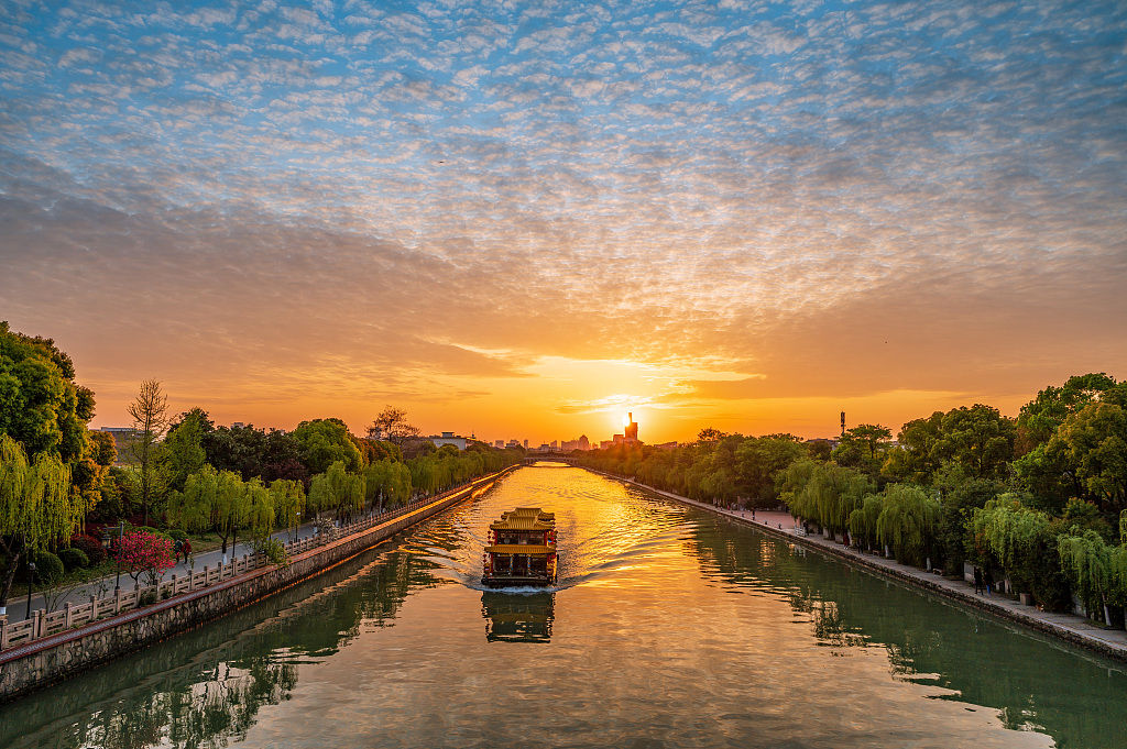 它由京杭大運(yùn)河、隋唐大運(yùn)河、浙東運(yùn)河組成,溝通起黃河、海河、淮河、長江、錢塘江五大水系,織就了四通八達(dá)的水網(wǎng),造福著沿岸一代又一代的百姓。