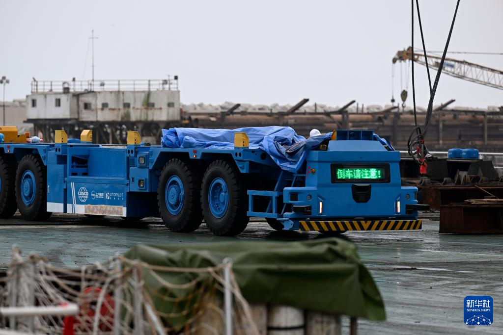 這是6月21日在秘魯錢凱港碼頭操作區(qū)拍攝的具備自動(dòng)駕駛技術(shù)的電動(dòng)集裝箱卡車。 新華社記者 李木子 攝