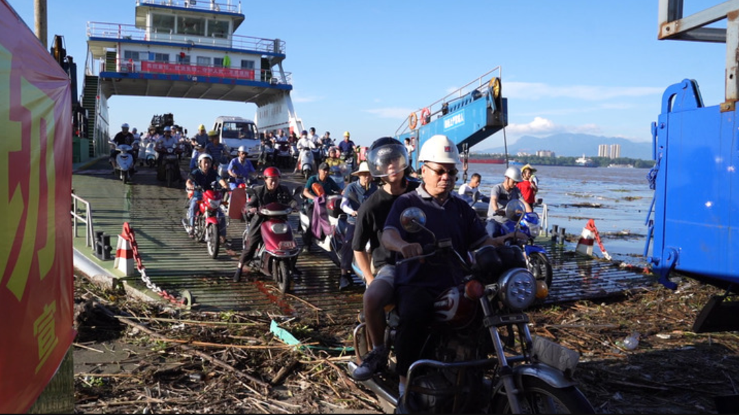 7月3日開(kāi)始往來(lái)于江西九江市區(qū)與江新洲的渡輪比以往繁忙得多隨機(jī)詢(xún)問(wèn)乘坐輪渡的人十有八九會(huì)回答“我回家防汛去!”