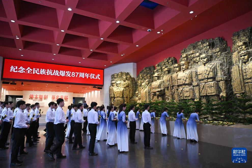 當(dāng)日,紀(jì)念全民族抗戰(zhàn)爆發(fā)87周年儀式在北京中國人民抗日戰(zhàn)爭紀(jì)念館舉行。