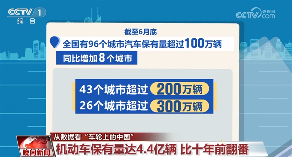 據(jù)公安部統(tǒng)計(jì),2024年上半年,全國(guó)新注冊(cè)登記機(jī)動(dòng)車1680萬(wàn)輛,新注冊(cè)登記汽車1242萬(wàn)輛,同比增長(zhǎng)5.70%。截至6月底,全國(guó)機(jī)動(dòng)車保有量達(dá)4.4億輛,其中汽車3.45億輛。截至6月底,全國(guó)有96個(gè)城市的汽車保有量超過(guò)100萬(wàn)輛,同比增加8個(gè)城市。43個(gè)城市超過(guò)200萬(wàn)輛,26個(gè)城市超過(guò)300萬(wàn)輛。其中,成都、北京、重慶的汽車保有量超過(guò)600萬(wàn)輛,上海、蘇州、鄭州的汽車保有量超過(guò)500萬(wàn)輛。汽車保有量4.4億輛這一數(shù)據(jù),相比于10年前2014年的1.54億輛,翻了一倍都不止。而2014年的汽車新注冊(cè)量和年增量已經(jīng)刷新了當(dāng)時(shí)的紀(jì)錄。