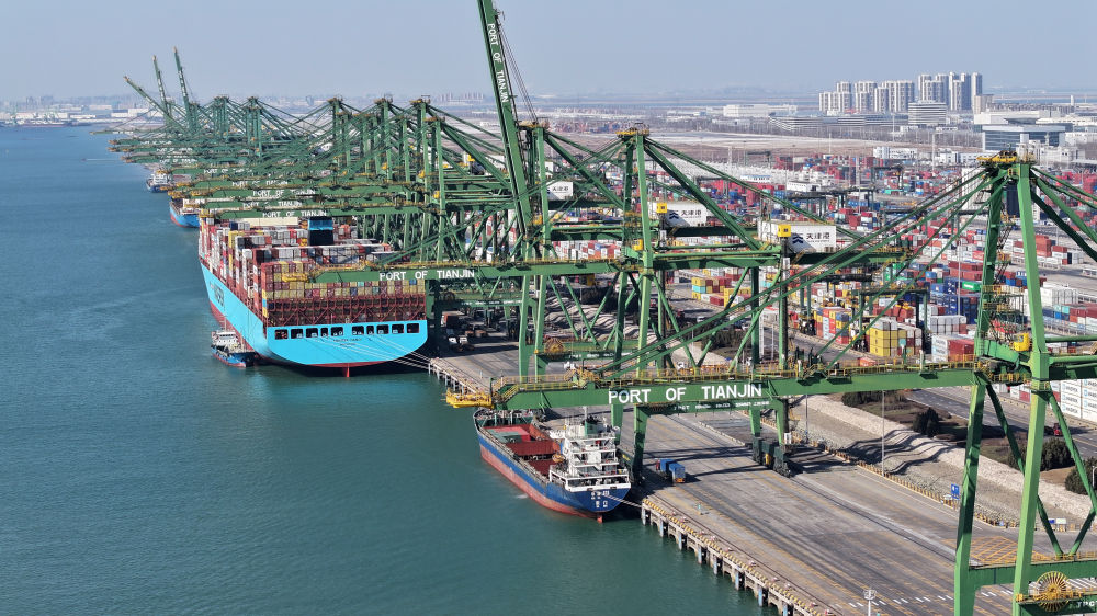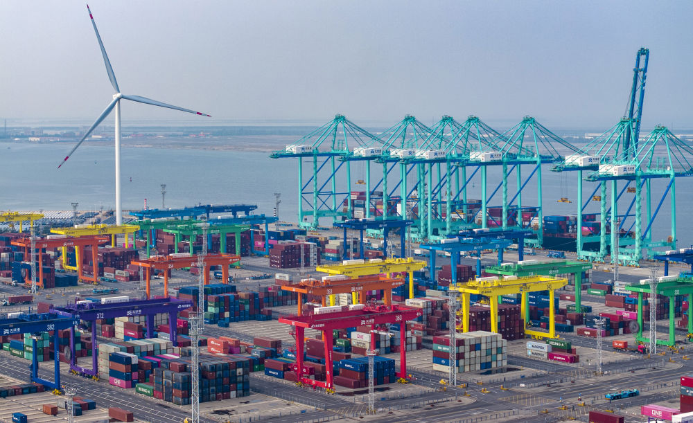 圖為2月2日拍攝的天津港太平洋國(guó)際集裝箱碼頭(無人機(jī)照片)。新華社記者 趙子碩 攝