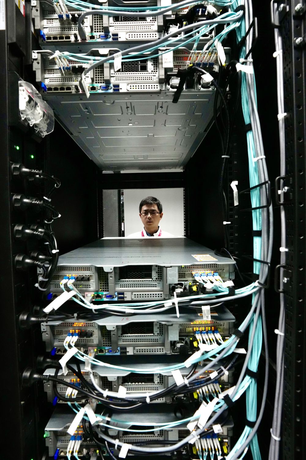 2月27日,克拉瑪依云計算產(chǎn)業(yè)園區(qū)華為云服務(wù)數(shù)據(jù)中心,技術(shù)人員正在巡查。新華社發(fā)(崔文娟 攝)