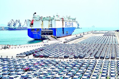 加快推進涉外立法工作、協(xié)調(diào)推進國內(nèi)治理和國際治理,使得國內(nèi)大循環(huán)和國內(nèi)國際雙循環(huán)不斷暢通。圖為山東港口煙臺港汽車碼頭,整齊停放的商品車等待運輸。新華社發(fā)