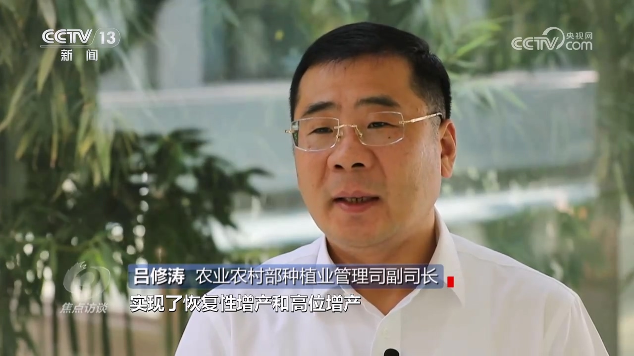 農(nóng)業(yè)農(nóng)村部種植業(yè)管理司副司長呂修濤:“今年的“三夏”生產(chǎn)可以用“過五關(guān)斬六將”來形容,克服了一系列風(fēng)險和挑戰(zhàn),實現(xiàn)了恢復(fù)性增產(chǎn)和高位增產(chǎn),這是今年夏糧一個非常突出的成果?!?/p>
