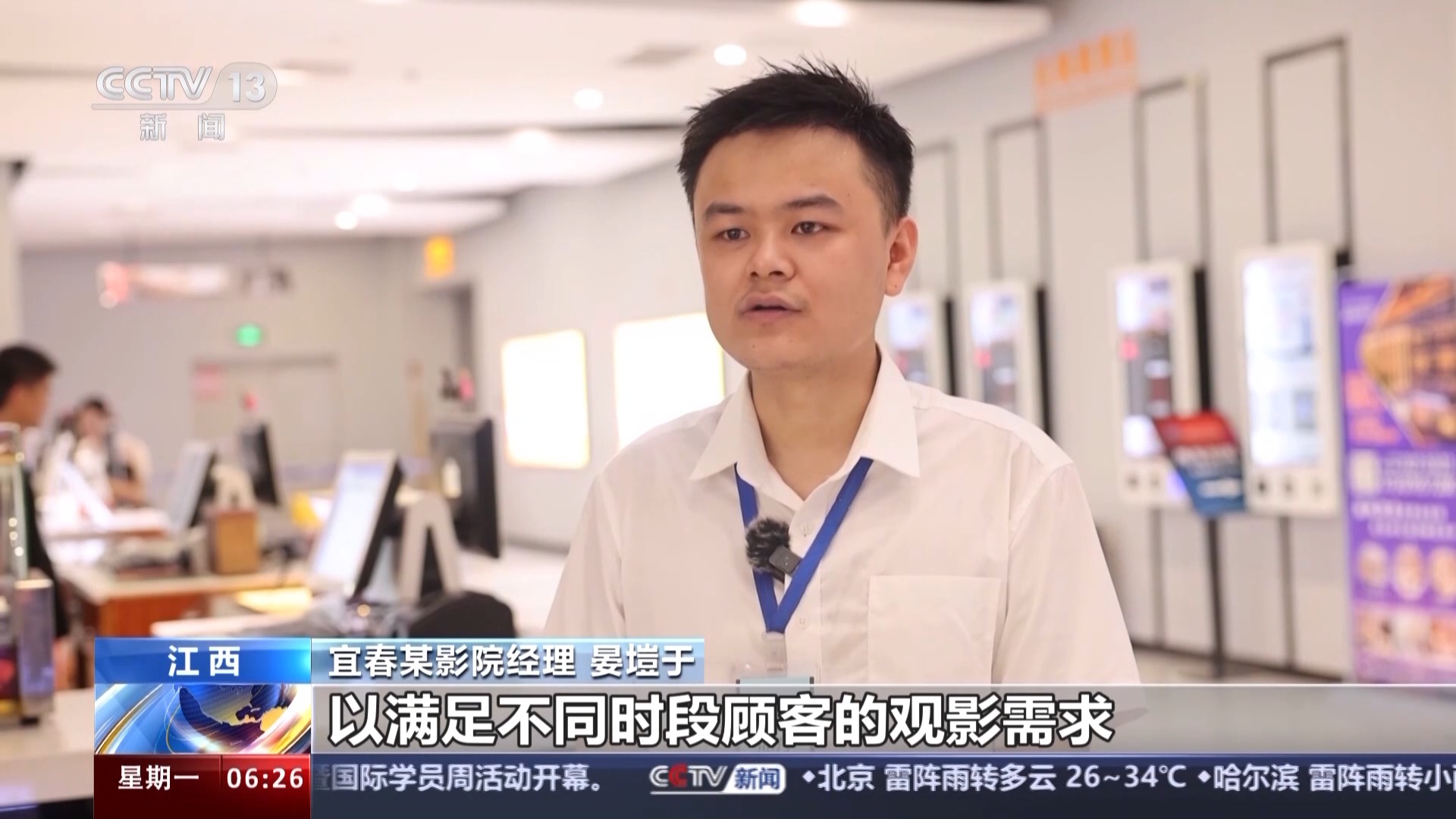 宜春某影院經(jīng)理 晏塏于:一方面,我們增加了主力影片的排片量,以滿足不同時段顧客的觀影需求;第二方面是我們影院增派了人手,提高了影城的接待能力和服務水平,減少顧客的排隊等待時間。