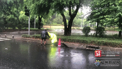 福州市各級各部門加強預警、堅守一線冒雨搶通積水點