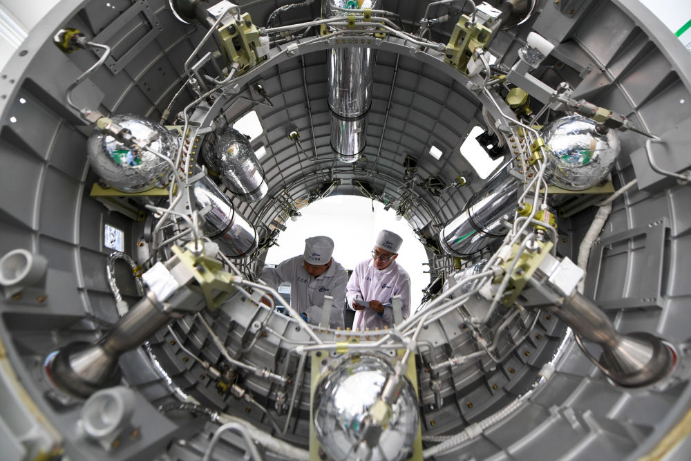 在北京星際榮耀空間科技股份有限公司,裝配測試人員在安裝液體姿軌控動力系統(tǒng)(2024年2月28日攝)。新華社記者 鞠煥宗 攝