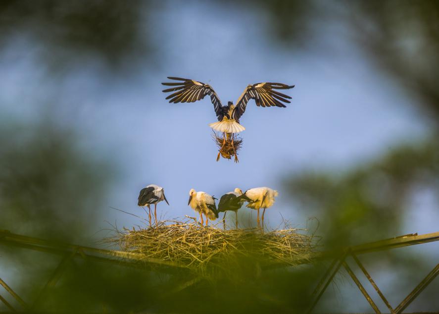 黃河口候鳥棲息地東方白鸛(攝影:黃高潮)