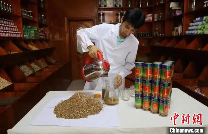 和田藥茶制作技藝傳承人買提卡斯木·芒里克正在泡制藥茶。(資料圖)受訪者供圖