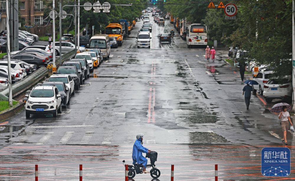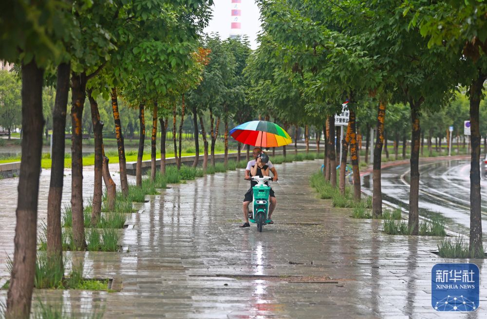 7月28日,在遼寧省沈陽市大東區(qū),市民在雨中出行?! ⌒氯A社記者龍雷攝