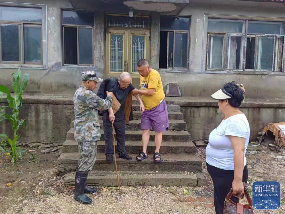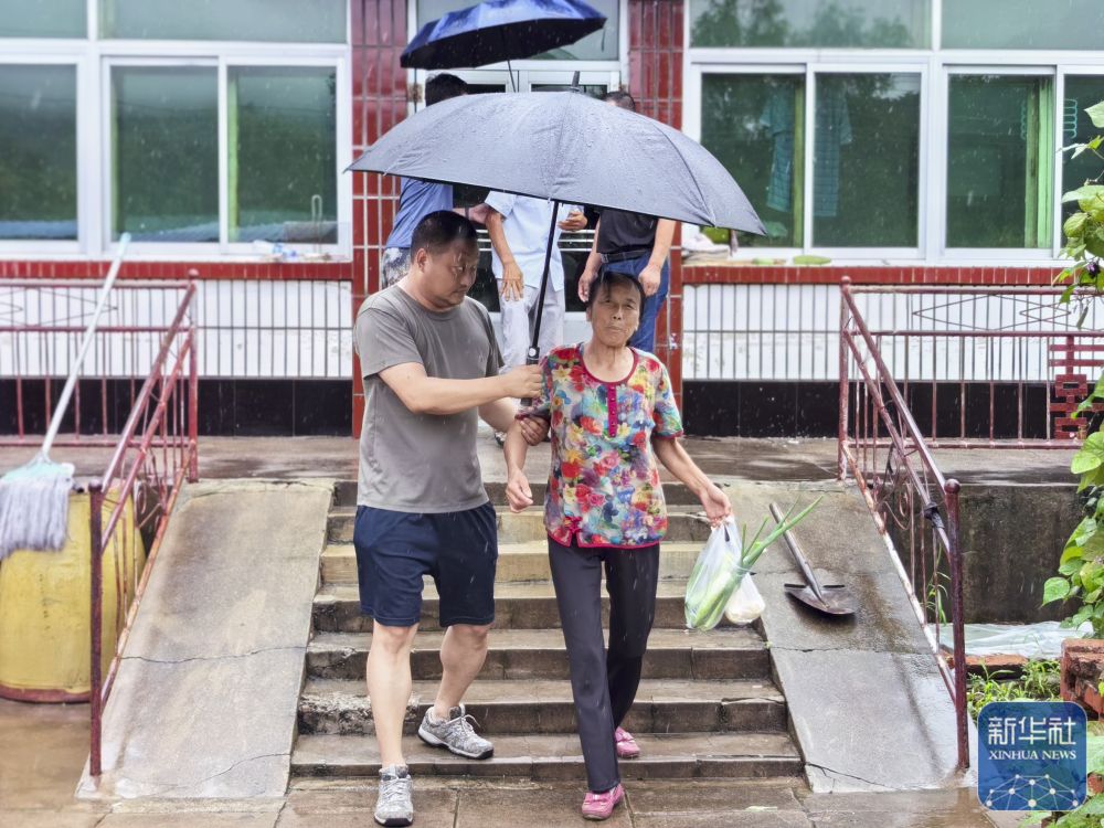7月27日,在遼寧省鐵嶺縣雞冠山鄉(xiāng)業(yè)爾興村,村干部在轉(zhuǎn)移受災(zāi)群眾。 新華社發(fā)
