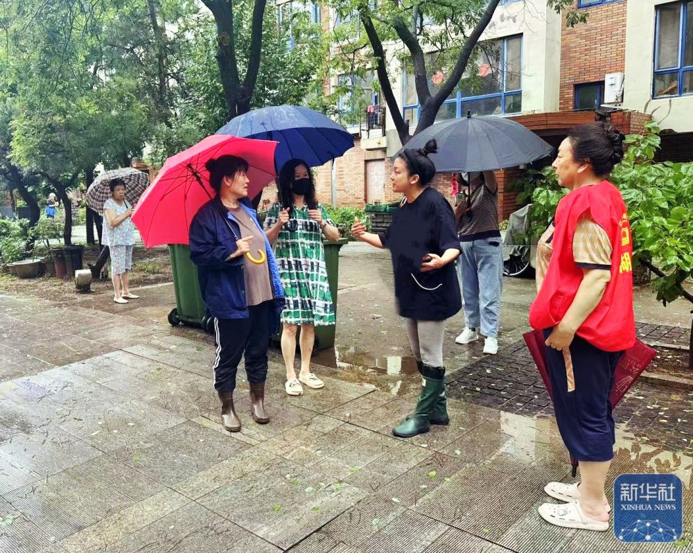7月27日,營口市站前區(qū)建豐街道工作人員叮囑居民注意安全?! ⌒氯A社發(fā)