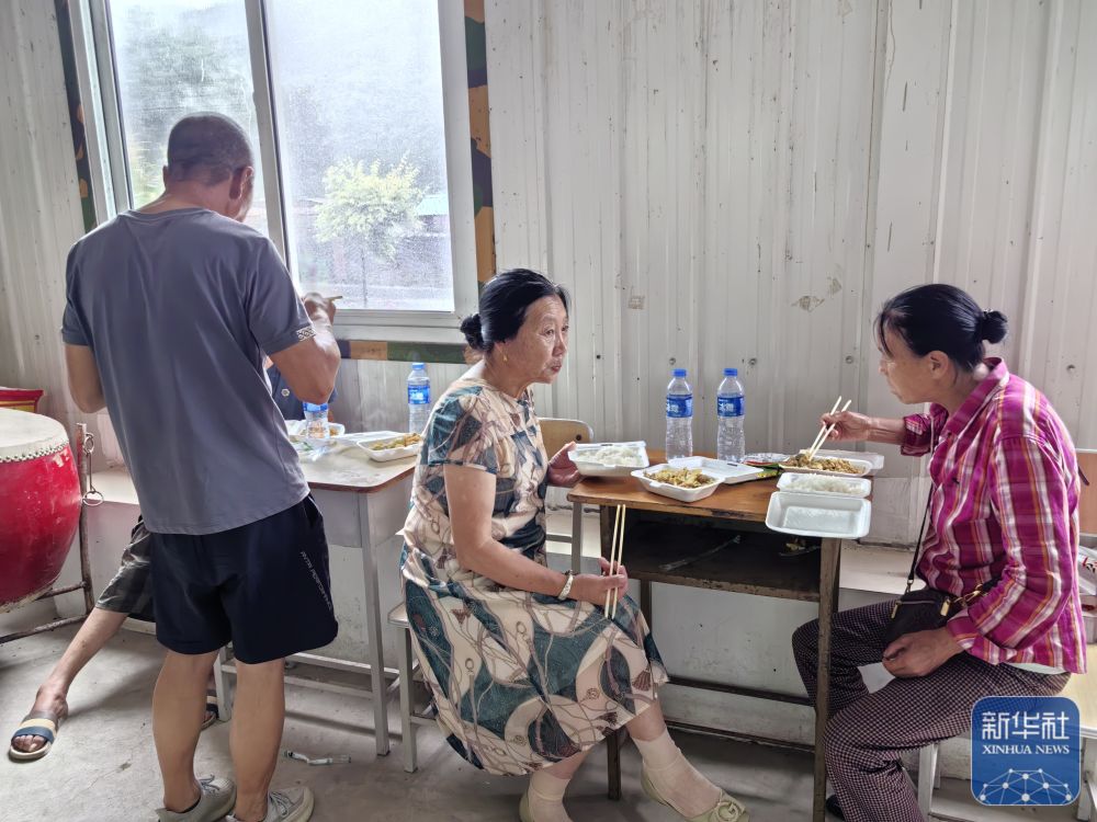 7月27日,在遼寧省鐵嶺縣大甸子鎮(zhèn),受災(zāi)群眾在安置點吃飯?! ⌒氯A社發(fā)