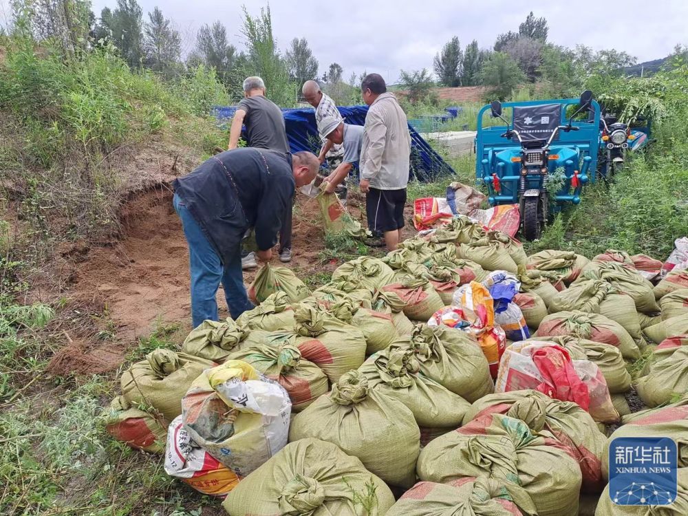 7月27日,遼寧省鐵嶺縣平頂堡鎮(zhèn)組織各村緊急裝運沙袋,全鎮(zhèn)共準備5000個沙袋迎戰(zhàn)強降雨?! ⌒氯A社發(fā)