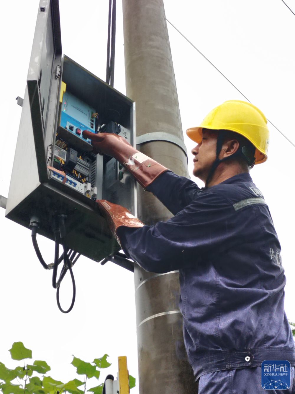 7月27日,在遼寧省丹東市,國家電網(wǎng)丹東供電公司員工對10千伏堡鎮(zhèn)線進行檢查?! ⌒氯A社發(fā)